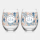 Bride Groom Monogrammed wine glass. Nautical Wedding Beach Sea Shell and Roses, Flower pink and blue wedding all in one wedding wine glass. Shades of Blue Navy and Dusty Blue, Peach, and Pink. Beach wedding products are available on a large array of products for the perfect custom beach wedding.