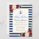 Nautical Wedding Blue Stripes Watercolor Burgundy Marsala Floral Gold Invitation