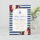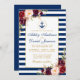 Nautical Wedding Blue Stripes Watercolor Burgundy Marsala Floral Gold Invitation - Blue Back