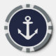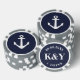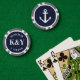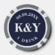 Nautical wedding custom poker chip token for drinks. Navy blue and white anchor design with bride and groom monogram. Customisable initials plus date of marriage. Personalised party poker chips with monogrammed name initial of newly weds couple. Fun maritime token gift idea for wedding guests. Great for themed venue in Las Vegas or beach destination marriage. Also great for sailor, boat captain, skipper etc. Use for getting drinks at the bar. Can also be used as keepsake or golf ball markers. Change quantity to get the cheap bulk price. Double sided print. Customisable edge colour.