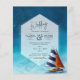 Striking watercolor sailing boat nautical ocean sea themed wedding invitation.