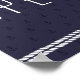 Nautical Open Bar wedding reception sign (poster) with white anchir and customisable white text, printed on navy blue background and anchor pattern. Dimensions of the sign print (poster) are 14 inches by 11 inches.