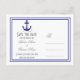 A sailing themed navy blue and white design with a ships anchor save the date design for white weddings to match your wedding stationery suite and other bridal essentials. This stylish modern wedding save the date, easily personalised with the bride and grooms names to the text templates to create your own unique custom tying the knot save the date for your special marriage occasions, events and celebrations. Visit the PERSONALIZED_ WEDDINGS STORE for matching coordinated wedding sets. CUSTOMIZE to adjust the text and font.