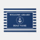 Nautical Welcome Aboard Anchor Rope Navy Blue and White Stripes Your Boat Name Door Mat