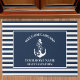 Nautical Welcome Aboard Floral Anchor Navy Striped Doormat