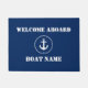 Nautical Welcome Anchor Rope Your Boat Name Door Mat Navy Blue and White