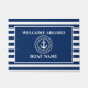 Nautical Welcome Aboard Anchor Rope Stars Navy Blue and White Stripes Your Boat Name Door Mat