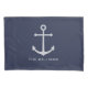 Modern Minimalist Nautical Pillow Case featuring white anchor with personalised name in white modern sans serif font style on navy blue background.