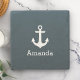 Nautical White Anchor Blue Ombre Personalised Name Stone Coaster