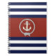 Nautical white anchor/Navy knot/red/white stripe Notebook