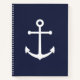 Modern Minimalist Nautical Notebook featuring white anchor on navy blue background.