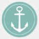 These cute round stickers feature a crisp white nautical anchor on a background of soft teal.
