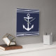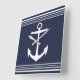 Navy blue and white stripes white anchor silhouette square wall clock.