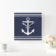 Nautical White Anchor & Stripes Navy Blue Square Wall Clock