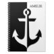 Nautical White and Black Anchor {pick your colour} Notebook