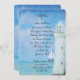 White lighthouse with sailboat and seagull for nautical wedding invitation.