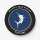 Nautical White Marlin Happy Birthday with Name Paper Plate