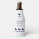 Personalised Nautical White Navy Blue Sandpipers Address bottle cooler| part of the ocean nautical themed decor soft navy Sandpipers Nautical designs perfect for coastal living, lake decor, river decor, and more. Design by Sandy Closs.