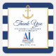 Nautical White Navy Blue Stripes Party Event Square Sticker