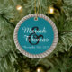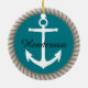 This couple's monogrammed wedding ornament features a white rope nautical themed design with a white silhouette of an anchor and custom background colour! Get coastal this Christmas as you remember your special day in elegant and chic style.