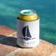 Nautical White sailboat Navy blue Coastal Monogram Can Cooler