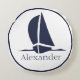 Nautical White sailboat Navy blue Coastal Monogram Round Cushion