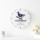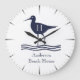 Nautical White Sandpipe Navy blue Coastal Monogram Large Clock