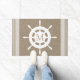 Nautical White Ship Wheel & Faux Burlap Doormat