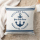 Nautical White Welcome Aboard Boat Name Anchor Cushion