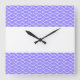 Nautical Wide Tiled Purple Waves White Stripes Square Wall Clock