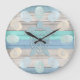 Nautical Wood Stripes, Sea Glass, Turtle Large Clock