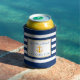 This custom can cooler features this quote with your boat's name and a vibrant yellow anchor.
