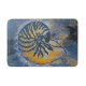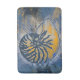 Nautilus illustration, spiral shell, navy blue, yellow, beige, ochre, white,