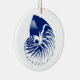 Digital sketch of a striped nautilus shell - dark navy blue and white shell against a white background