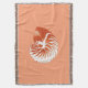 Digital sketch of a striped nautilus shell - deep terrracotta and white shell against a light terracotta background