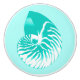 Digital sketch of a striped nautilus shell - soft turquoise and white shell against a pastel aqua background