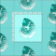 Digital sketch of a striped nautilus shell - turquoise and white shell against a pastel aqua background fabric
