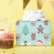 Here we have a lovely wrapping paper that features Santa, an angel, Christmas tree, present, gingerbread man and candy canes on a mint green background. This paper is available in multiple sizes and is a match to other wrapping papers, tissue papers, gift bags and a greeting card. This is sure to make a perfect addition to your gifts this holiday season.