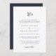 Personalise this classic and elegant wedding invitation with your monogram or duogram joined by a decorative script ampersand. Add your wedding details beneath in timeless navy blue lettering with calligraphy script accents. A beautiful choice in classic navy and white for formal weddings in any season. Alternate wording and layout available in our Ampersand Monogram collection.
