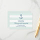 Destination wedding registry card with navy blue anchor and mint green stripes. Great for beach weddings and nautical themed parties.