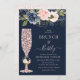A navy and blush wedding theme design with white painted flowers for a bridal brunch. A perfect design for your summer wedding. You can personalise the text and colour detail on this wedding invite template.