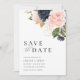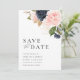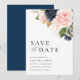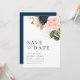 modern watercolor navy blue and blush floral save the date wedding card. The text and colours can be edited.
