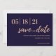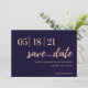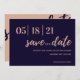 spread the news of your wedding date with this classy navy and blush pink save the date card. with a modern combination of bold type with script font this is on trend but also timeless