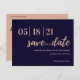 spread the news of your wedding date with this classy navy and blush pink save the date card. with a modern combination of bold type with script font this is on trend but also timeless
