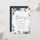 Watercolor blush pink and navy blue flowers with elegant black script. The text and navy back colours can be personalised.