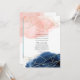 Celebration of Life invitation featuring navy blue and blush pink watercolor paint splashes and a gold geometric frame.