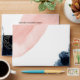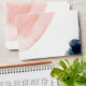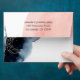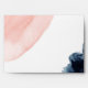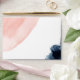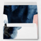 Envelope featuring navy blue and blush pink watercolor paint splashes and gold geometric elements.