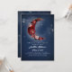 Navy blue and burgundy red celestial graduation party invitations feature starry night sky and the romantic floral crescent moon