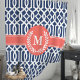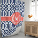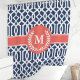 Navy and Coral Moroccan Trellis Monogram Shower Curtain