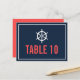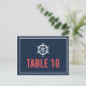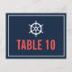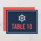 Dark navy blue and coral thank you card with a white helm illustration. This is perfect for nautical themed weddings or sea and ocean themed weddings.